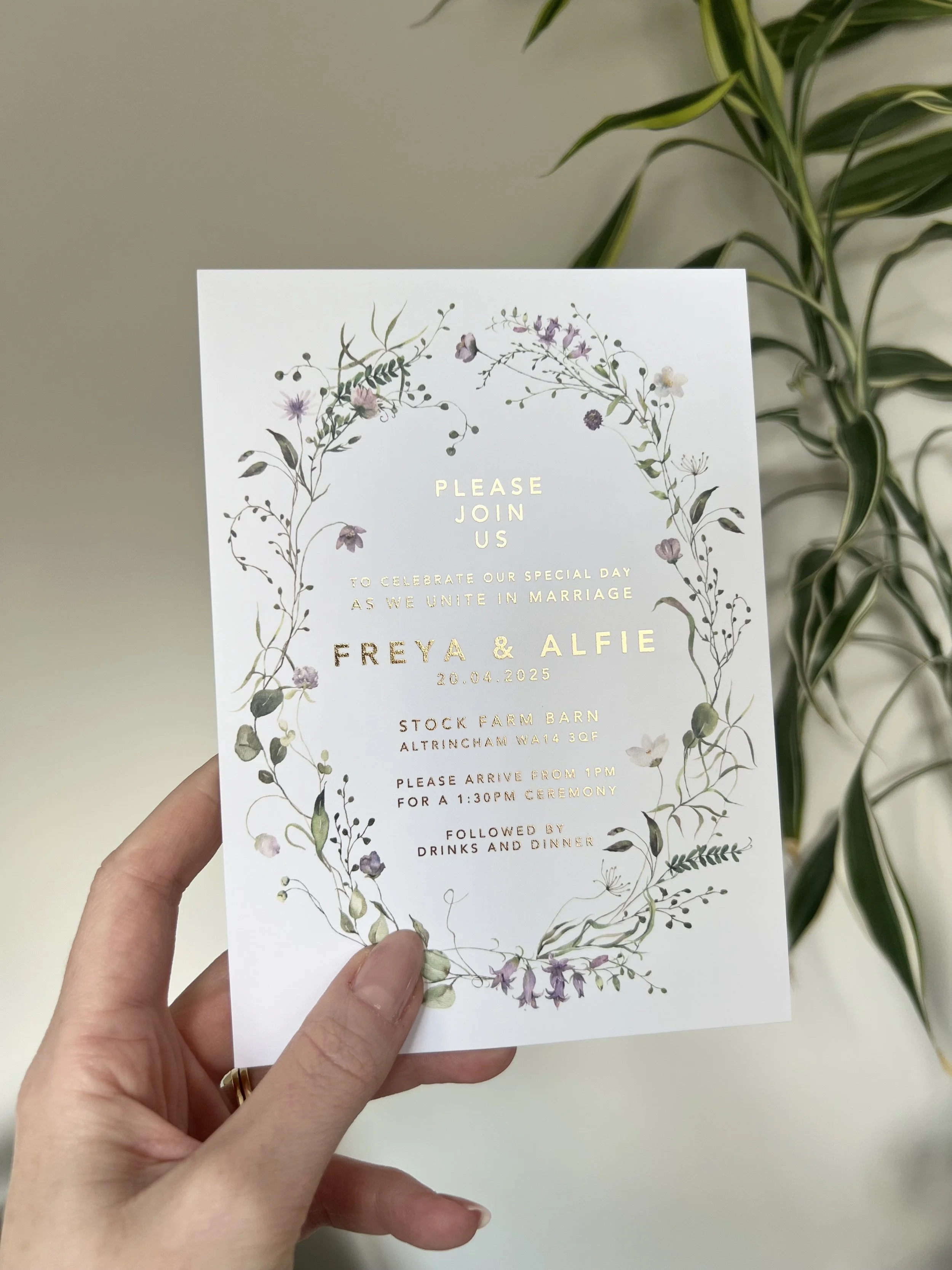 Freya is a feminine and pretty collection, with delicate watercolour florals & bright gold foil lettering. Shown here in a soft pink and mulberry colour palette, but just imagine her in a sage green or pastel blue!